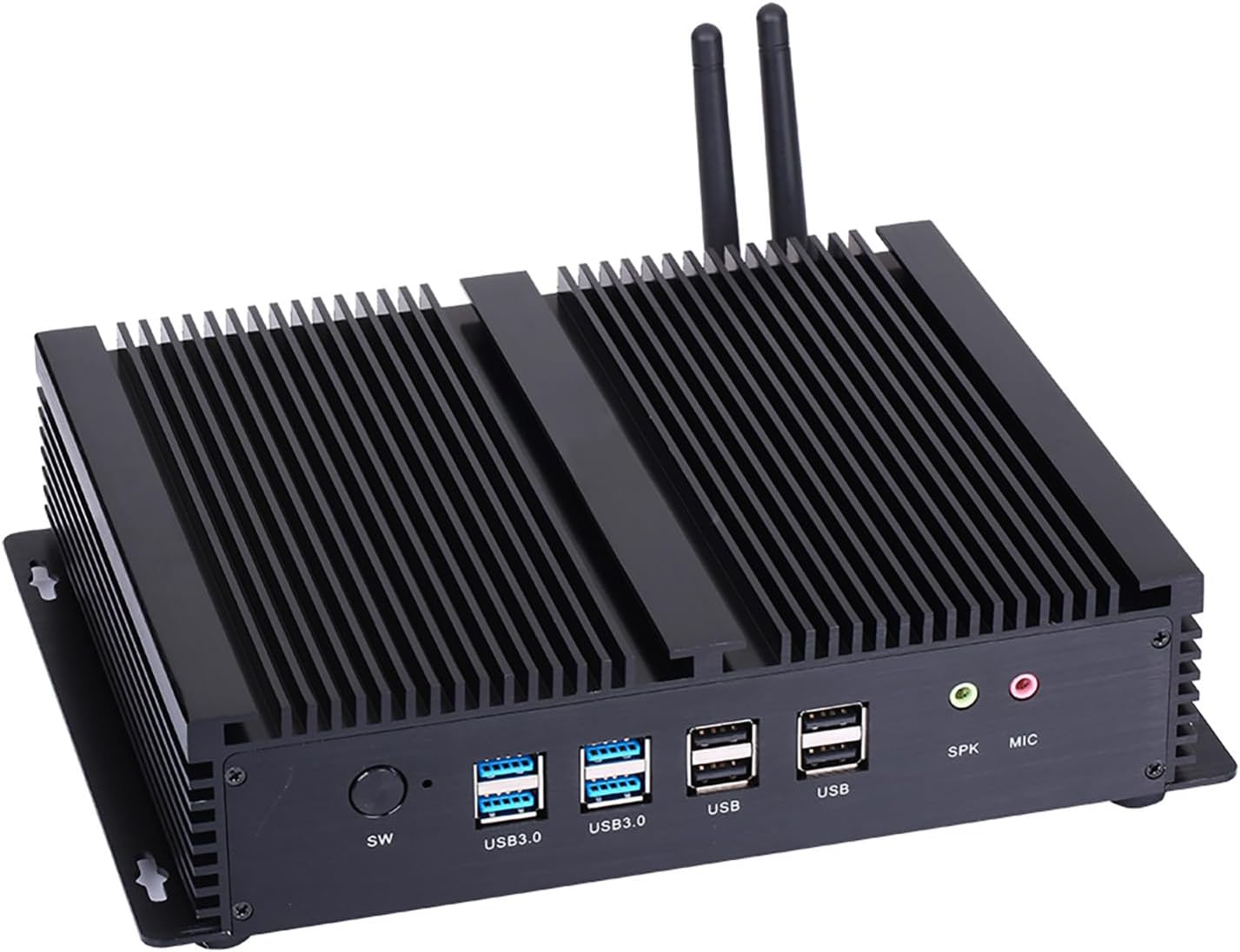 HUNSN IM04 designed with 2 x hdmi, 4 x usb3.0, 4 x usb2.0, 6 x com rs232, 2 x rj45, dc, mic, spk, industrial aesthetic design and reasonable interface layout, support automatically power on after power failure, IPC type with mounting ears